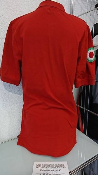 Im Angebot sind drei MV Agusta Poloshirts der Farbe rot (2 Stück der Grösse M) und hellblau (1 Stück der Grösse S). Sie sind alle originalverpackt und dementsprechend fabrikneu. Es sind schlichte klassische Poloshirts mit dem Markenemblem auf der linken Brust und einem Italokreis auf dem rechten Ärmel.