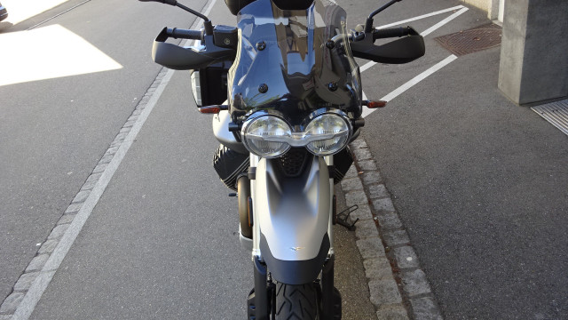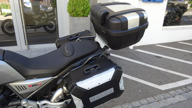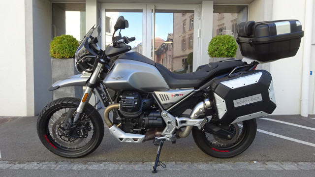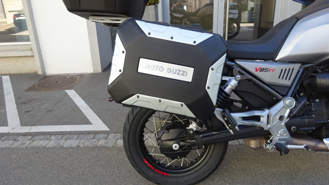 Diese Moto Guzzi V85 TT in "Grigio" (grau matt) ist aus erster Hand, unfallfrei und mit dem Seitenkoffer-Kit und einem Givi Topcase ausgestattet. - Fr. 8250.- mit 3Mt/3000km Garantie auf Motor und Getriebe
