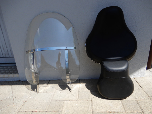 Sattel und Windschild werden mit gegeben.