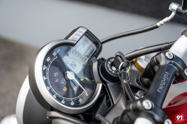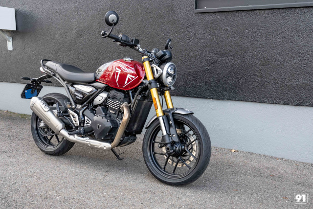 Unser Speed 400 ist/war unser Demo Bike und sammelte so ihre knapp 3000km. (kann ggf. noch etwas variieren)