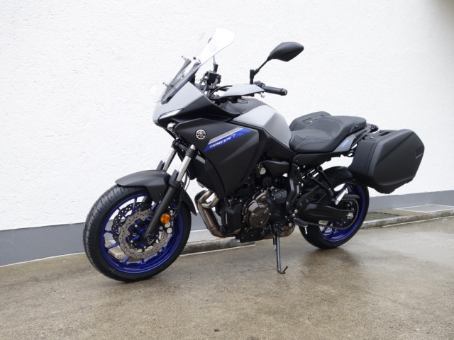 Motor mit Crossplane-Technologie produziert lineares Drehmoment, und sorgt für bemerkenswerte Beschleunigung in jedem Drehzahlbereich. Das kompakte Chassis und die einstellbare Federung sind gefertigt, um jede Kurve zum Genuss zu machen., , Die aerodynamische Verkleidung der nächsten Generation mit den doppelten LED-Scheinwerfern und den aggressiven schrägen Positionsleuchten verstärken das moderne Design des Bikes und das kraftvolle und gute Aussehen ? und mit seiner Ergonomie für Langstrecken, dem breiten Lenker und verstellbarer Windschutzscheibe ist dieses vielseitige Mittelgewicht immer bereit für deinen nächsten Motorradtrip. TRACER 7: It?s Your Turn.