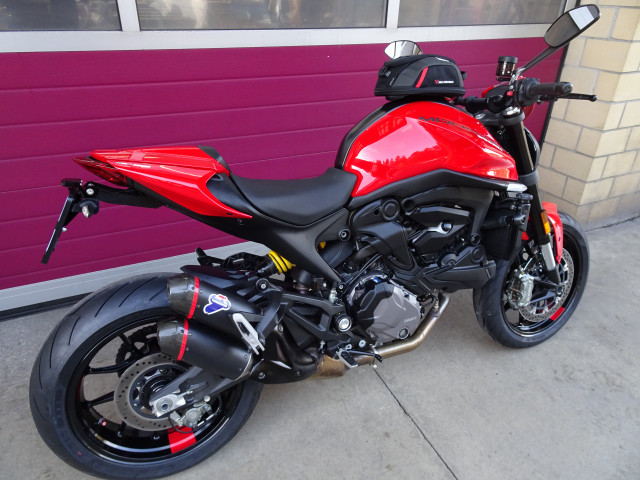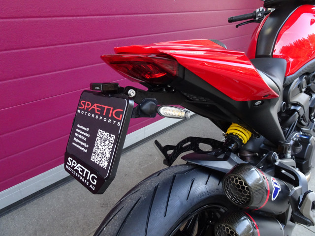 SW Motech Tankrucksack abnehmbar, Soziusabdeckung (Soziussitz vorhanden) , MG Kurzheck inkl. LED Kennzeichenbeleuchtung, Ducati Performance LED Lauflichtblinker hinten, Termignoni Endschalldämpfer.