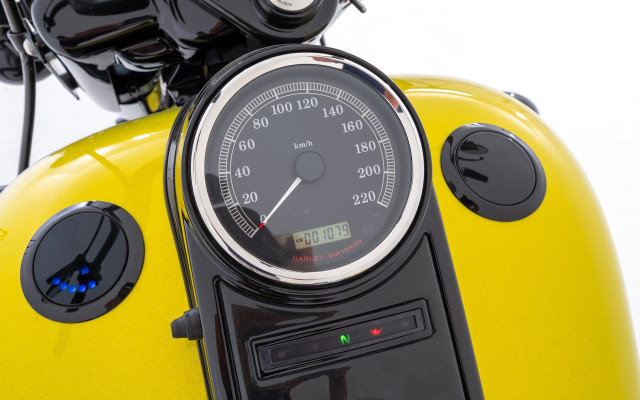 Zum Verkauf steht diese aussergewöhnliche Harley-Davidson FLHRC Road King Classic mit einem stilvollen Bagger-Umbau. Das Fahrzeug überzeugt nicht nur optisch, sondern auch durch seine extrem geringe Laufleistung von nur 1.080 Kilometern – quasi neuwertig!