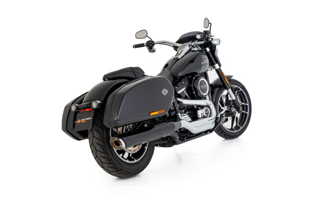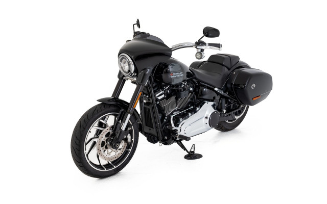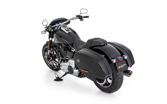 Harley-Davidson Sport Glide 107, die mit stilvollen und praktischen Extras ausgestattet ist.