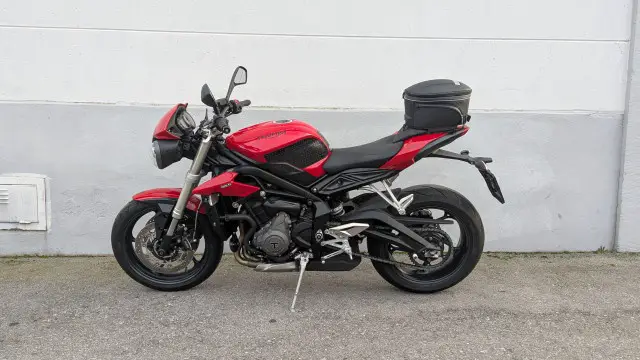 Die Maschine ist absolut original, einzig ein Tankschutz von Stomp Grip und die Praktische Hecktasche aus dem Triumph original Zubehör wurden nachgerüstet.