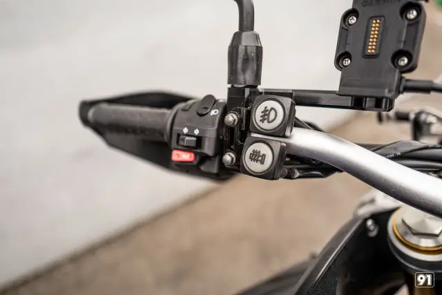Dieses unglaubliche Bike punktet mit dem damals höchsten Ausstattungsniveau für das ultimative Abenteuer bei jeder Fahrt. Mit dabei sind: Griffheizung, Zusatscheinwerfer, Handschützer, Verstellbare Brems-/Kupplungshebel, Touring Windschutzscheibe und Sturzbügel wenn’s mal hart auf hart kommt. Für die Lange Tour sind neben der Serienausstattung noch Seitenkoffer und TopCase von Hepco Becker verbaut worden. Damit man immer den Weg findet ist das Bike bereits für eine Garmin Navi vorbereitet. Der Stromhalter kann für die Nutzung eines aktuellen Navis schnell gewechselt werden.