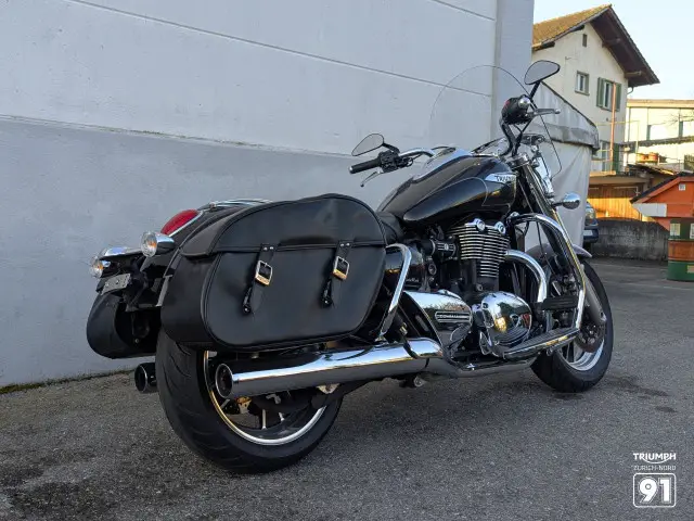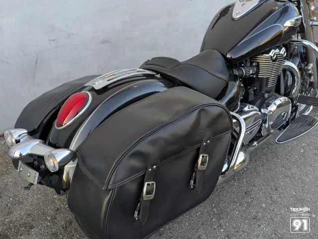 Leder Seitentaschen, Gepäckträger anstelle des Soziussitzes unterstützen das Cruisen. Man möchte gar nicht mehr absteigen…