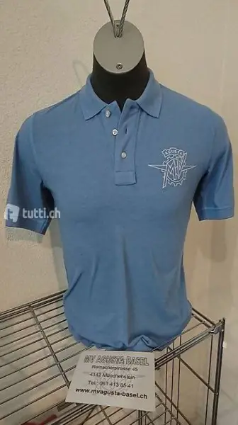 Im Angebot sind drei MV Agusta Poloshirts der Farbe rot (2 Stück der Grösse M) und hellblau (1 Stück der Grösse S). Sie sind alle originalverpackt und dementsprechend fabrikneu. Es sind schlichte klassische Poloshirts mit dem Markenemblem auf der linken Brust und einem Italokreis auf dem rechten Ärmel.