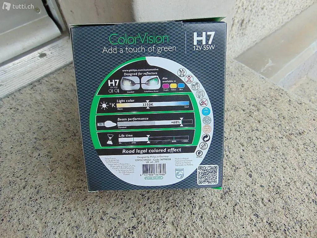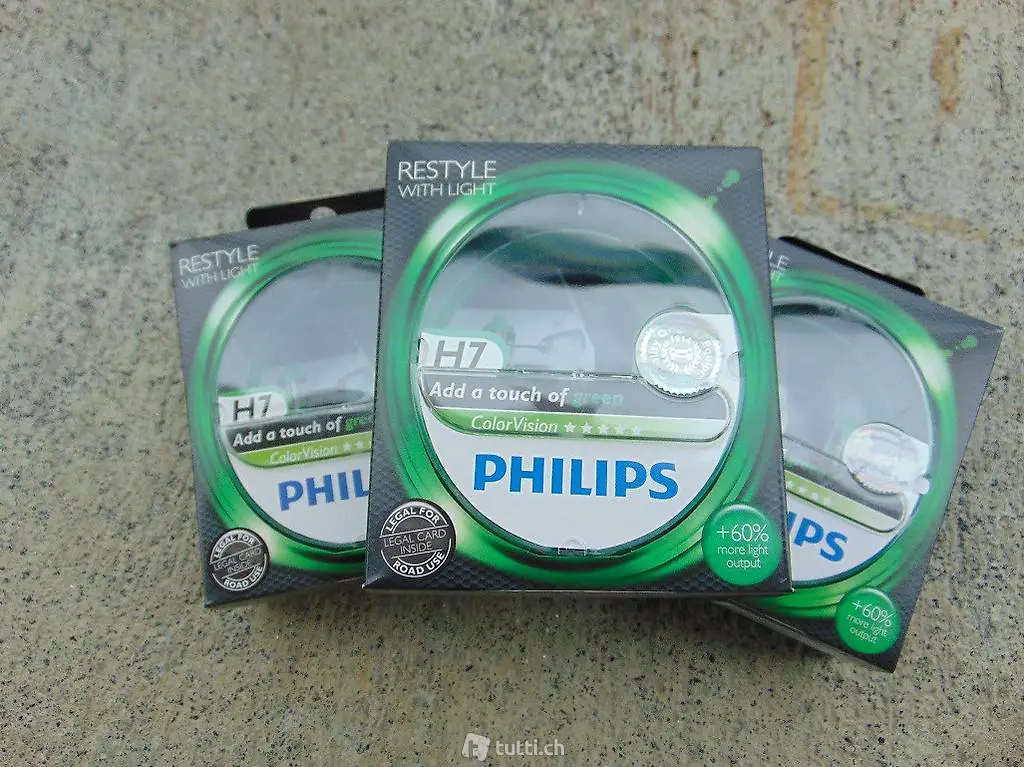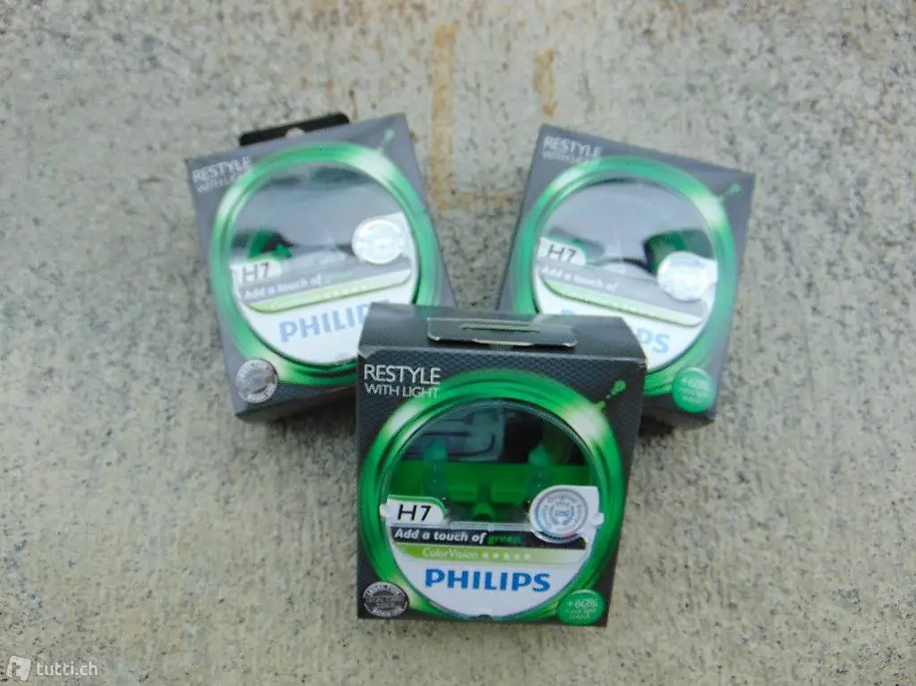 Verkaufe Fahrzeugbirnen des Typ H7 der Marke Philips Color Vision green, 12V 55W. Die Birnen sind im Doppelpack à 2 Stück, Neu und Originalverpackt. Es sind total 5 Packungen verfügbar. Der Preis von 15.-- Franken gilt pro Packung, alle 5 zusammen würde ich für 70.-- Franken geben. Der Ladenpreis pro Packung ist ca. 29.-- Franken. Abholung oder Versand per Post (Fr. 9.-- )