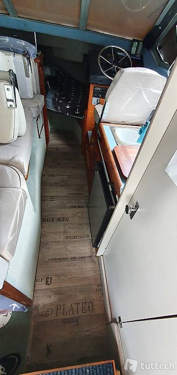 Interieur sehr guter Zustand, grosszügige Kabine bietet vorne genügend Platz für 2 Personen plus evt. 1 Kind, oder 3-Kinder. der Esstisch kann in ein Bett umgebaut werden 2x1.4m. Unter dem Tisch gibt es nochmals Platz für 1 Person oder 2 Kinder.