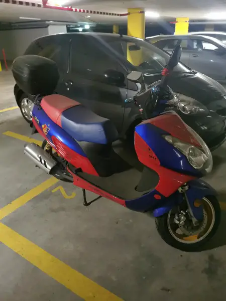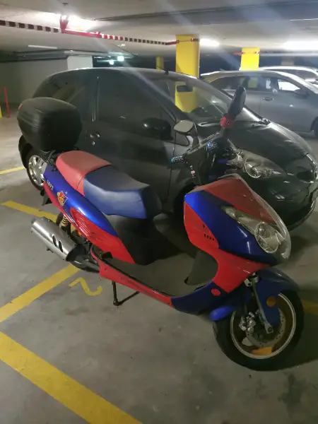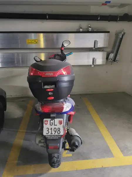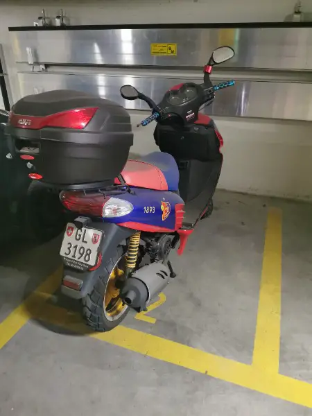Ich verkaufe den Roller ohne oder mit neuwertiges Zubehör (2 HELME mit mit Bluetooth, Lederjacke, Gepäckträger, Handyhalter, Handschuhe, Brustschutz)