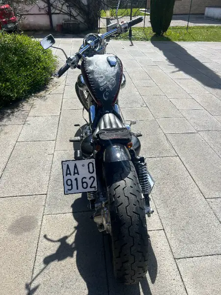 Ammortizzatori posteriori molto ribassati, sella monoposto, manubrio dritto e basso e altri particolari ne fanno un modello unico.