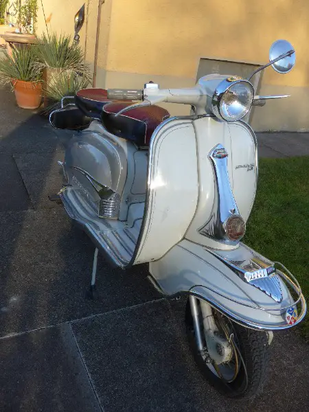 Lambretta 125 Li Serie 2 mit Veteraneneintrag nächste MFK 2030, Neuteile: Kurbelwelle, Kolben, Simmerringe, Lager, Kupplung, Lenklager, Reifen, Schläuche, Reflektor, Seilzüge und div. Kleinteile. Im Originallack von 1962. Rückspiegelhalterung wurde geändert. Sehr chicker Scooter, für den Alltagsgebrauch verwendbar, macht viel Spass.