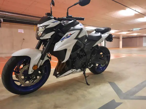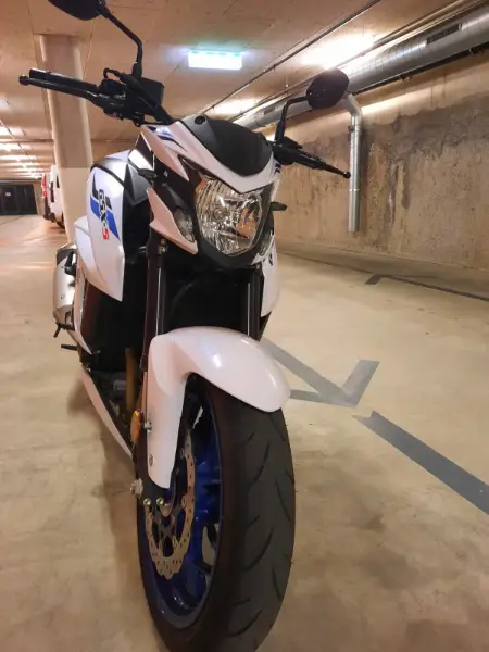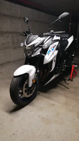 Suzuki GSX-S 750 ABS mise en route en août 2020, en excellent état, blanc et bleu.