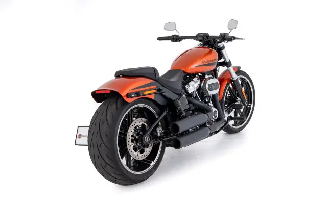 Zur einzigartigen Optik trägt auch der seitliche Kennzeichenhalter bei, der der Breakout eine cleanere, sportlichere Linie verpasst und das Gesamtbild noch aggressiver wirken lässt. Die LED-Blinker sorgen für eine moderne, klare Sichtbarkeit bei Nacht und setzen gleichzeitig einen stylischen Akzent, der die Breakout noch unverwechselbarer macht.