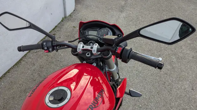 Die Maschine ist absolut original, einzig ein Tankschutz von Stomp Grip und die Praktische Hecktasche aus dem Triumph original Zubehör wurden nachgerüstet.