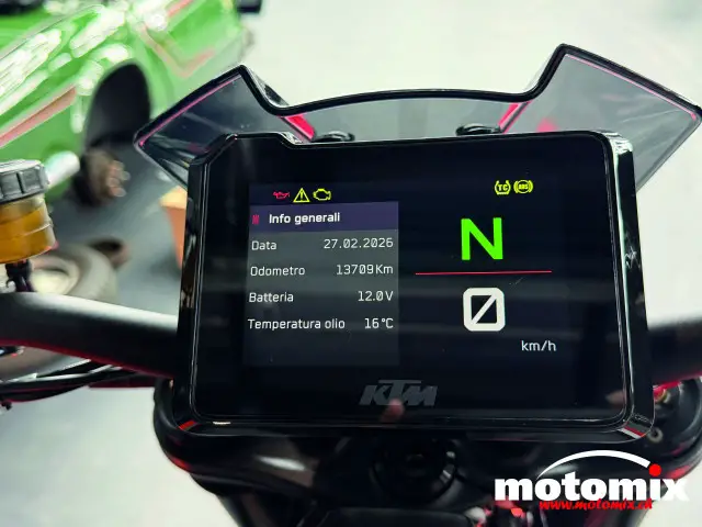- Optionals montati inclusi: SCARICO SC-PROJECT, PORTA TARGA CORTO, SPECCHIETTI A MANUBRIO, TECH PACK, FRECCE LED KTM.